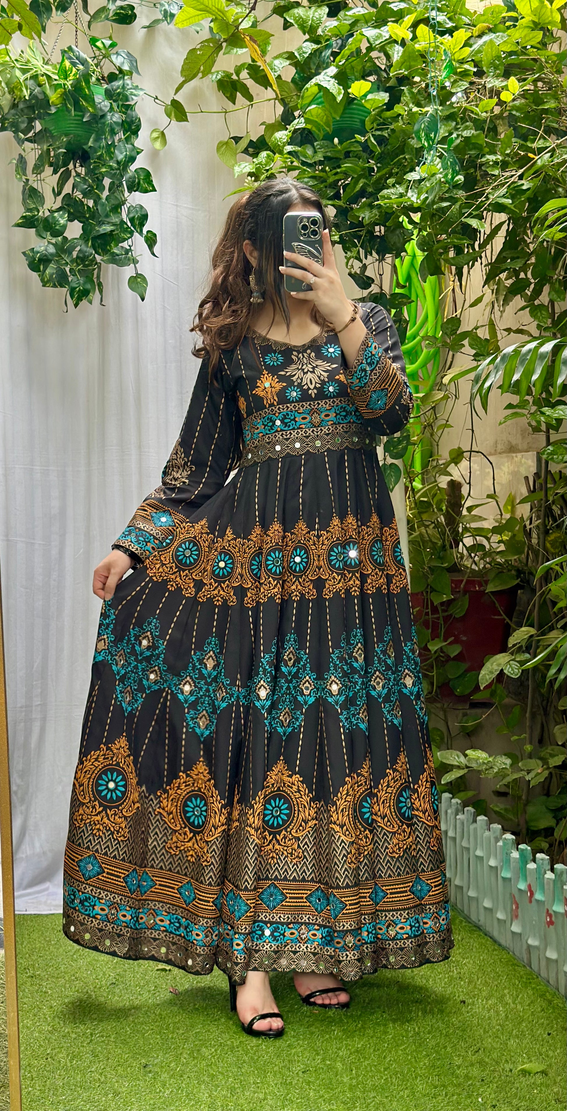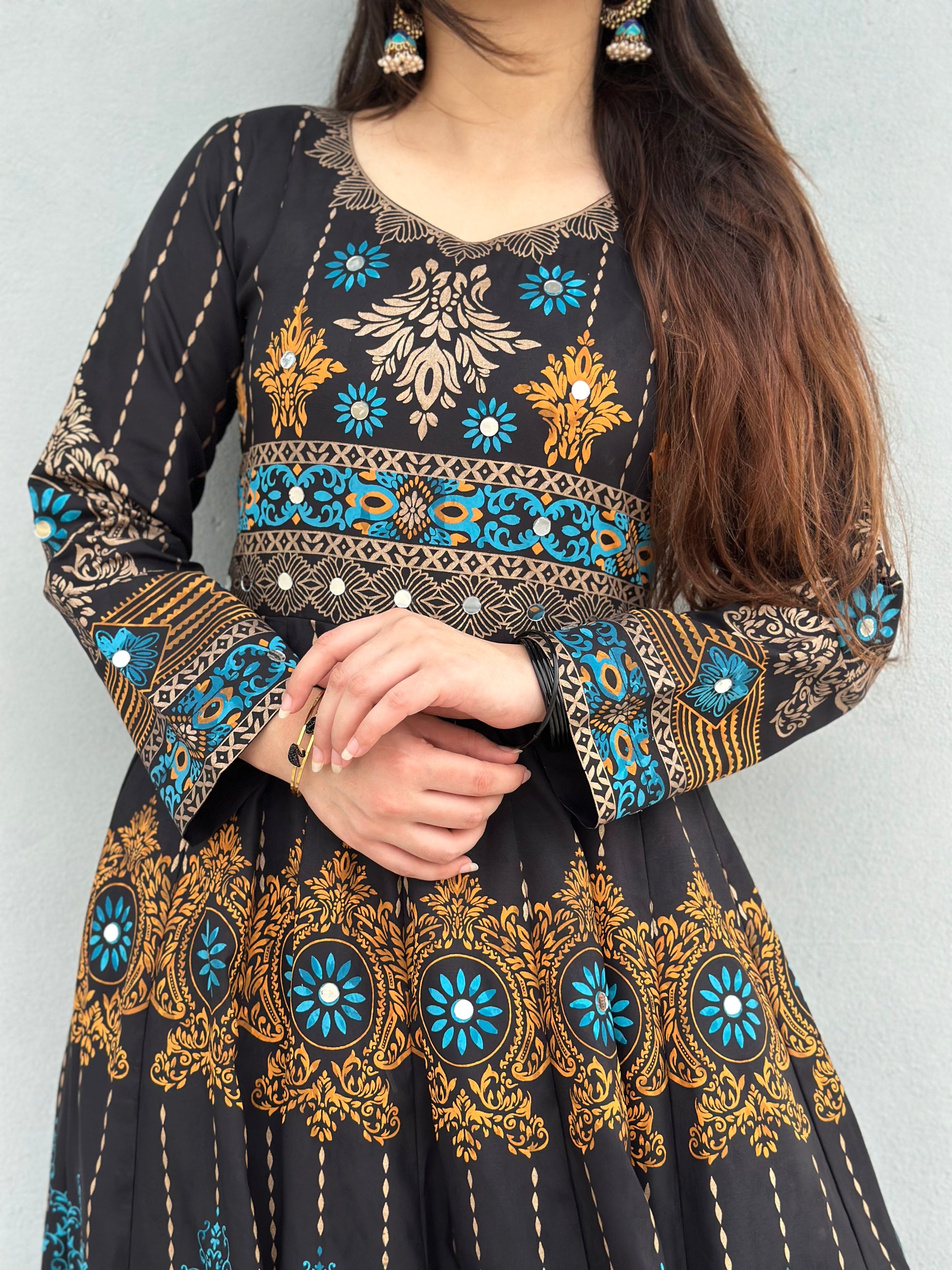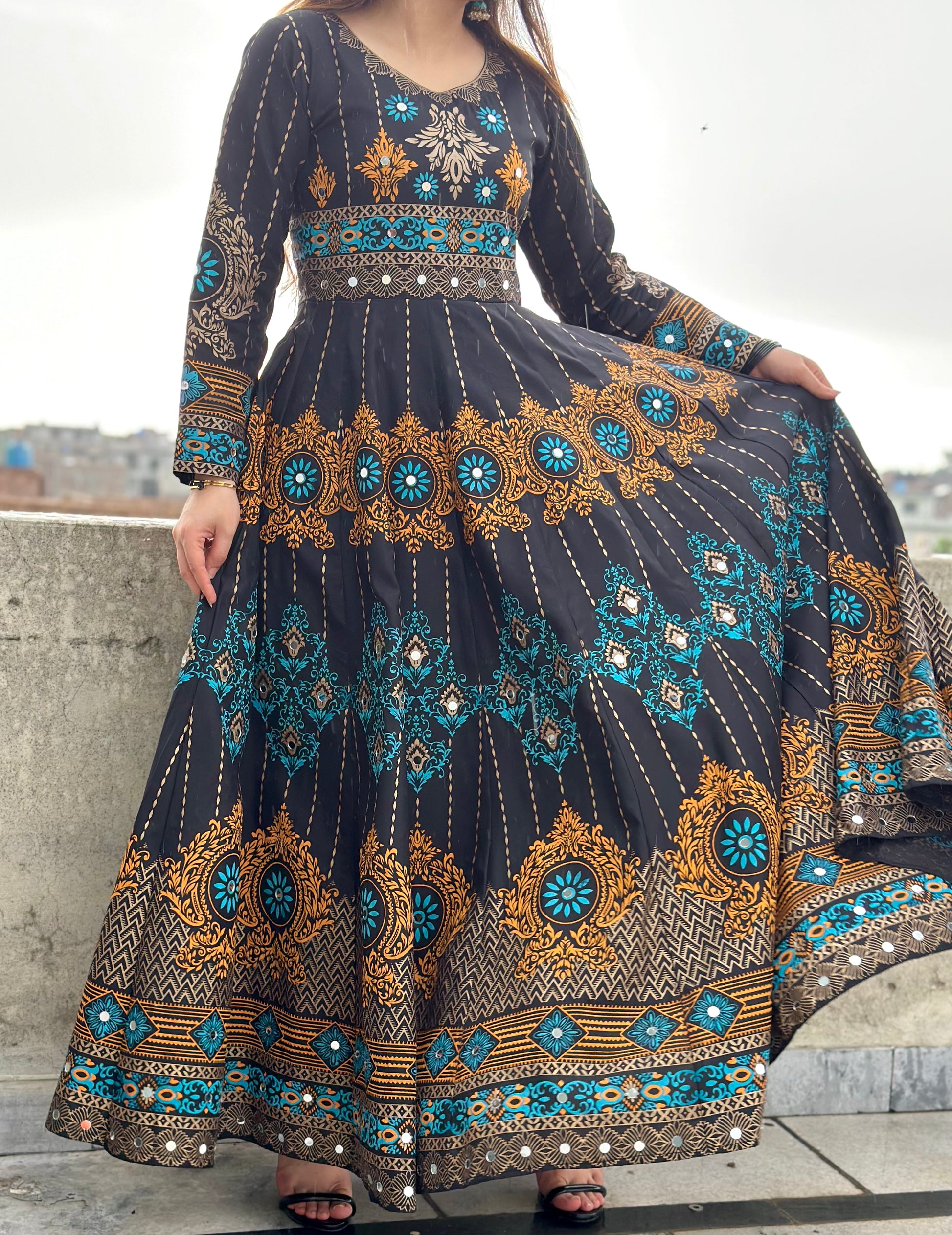 its 2pc maxi included maxi and capri...on whole maxi there is screen print with mirror work inludes on it.... fabric is available for both seasons summer and wniter, according to weather and customer demand we choose the fabric...