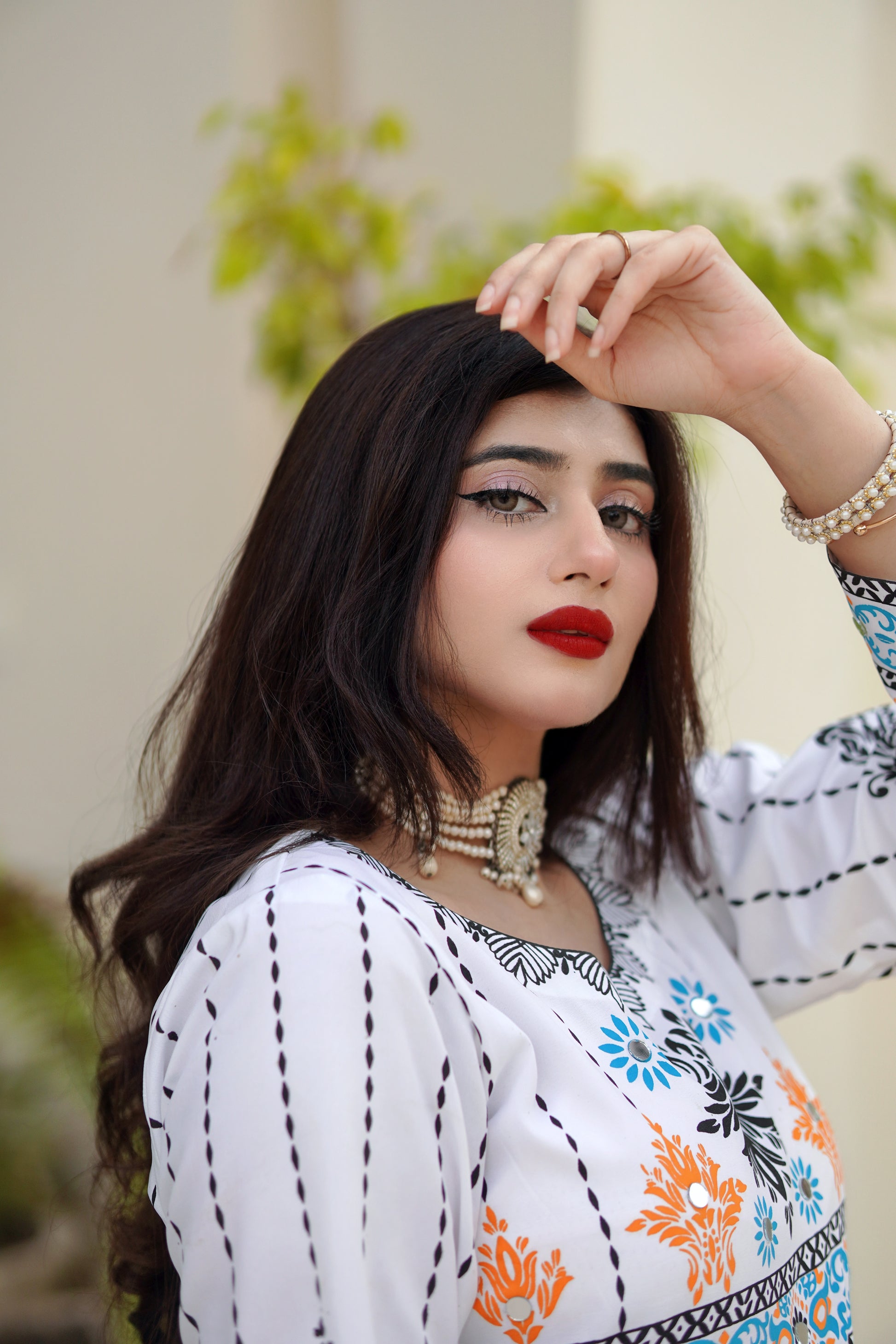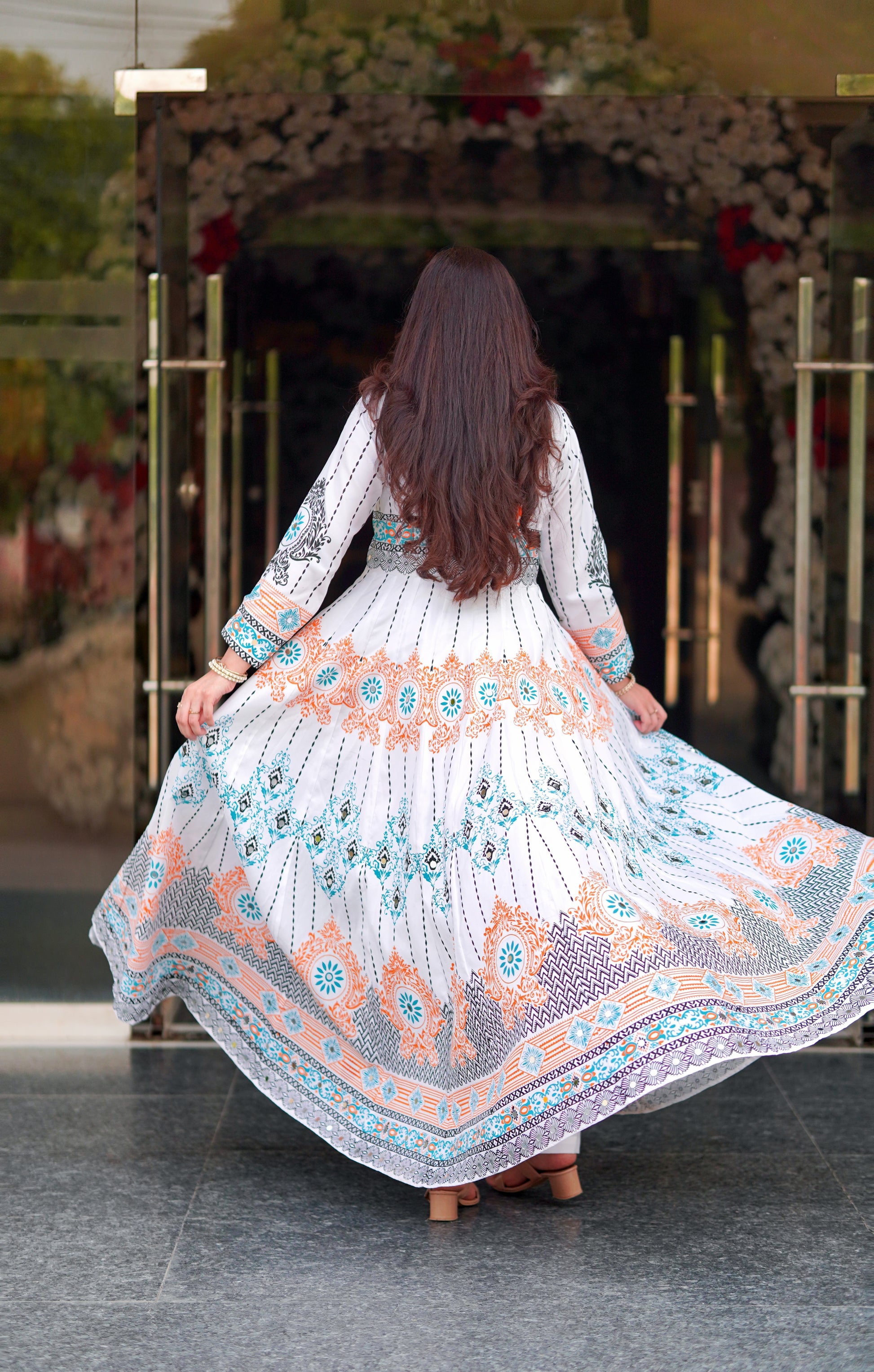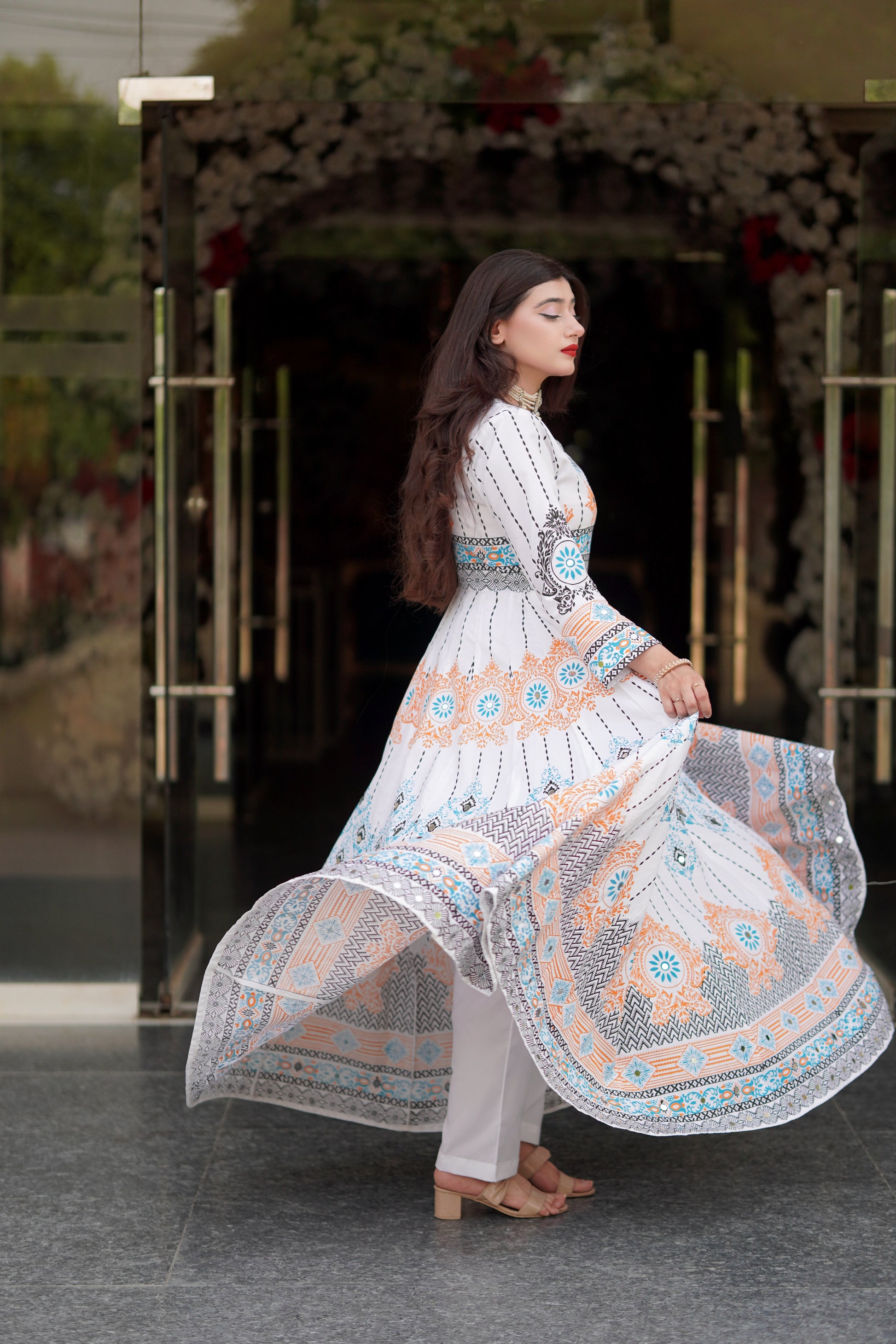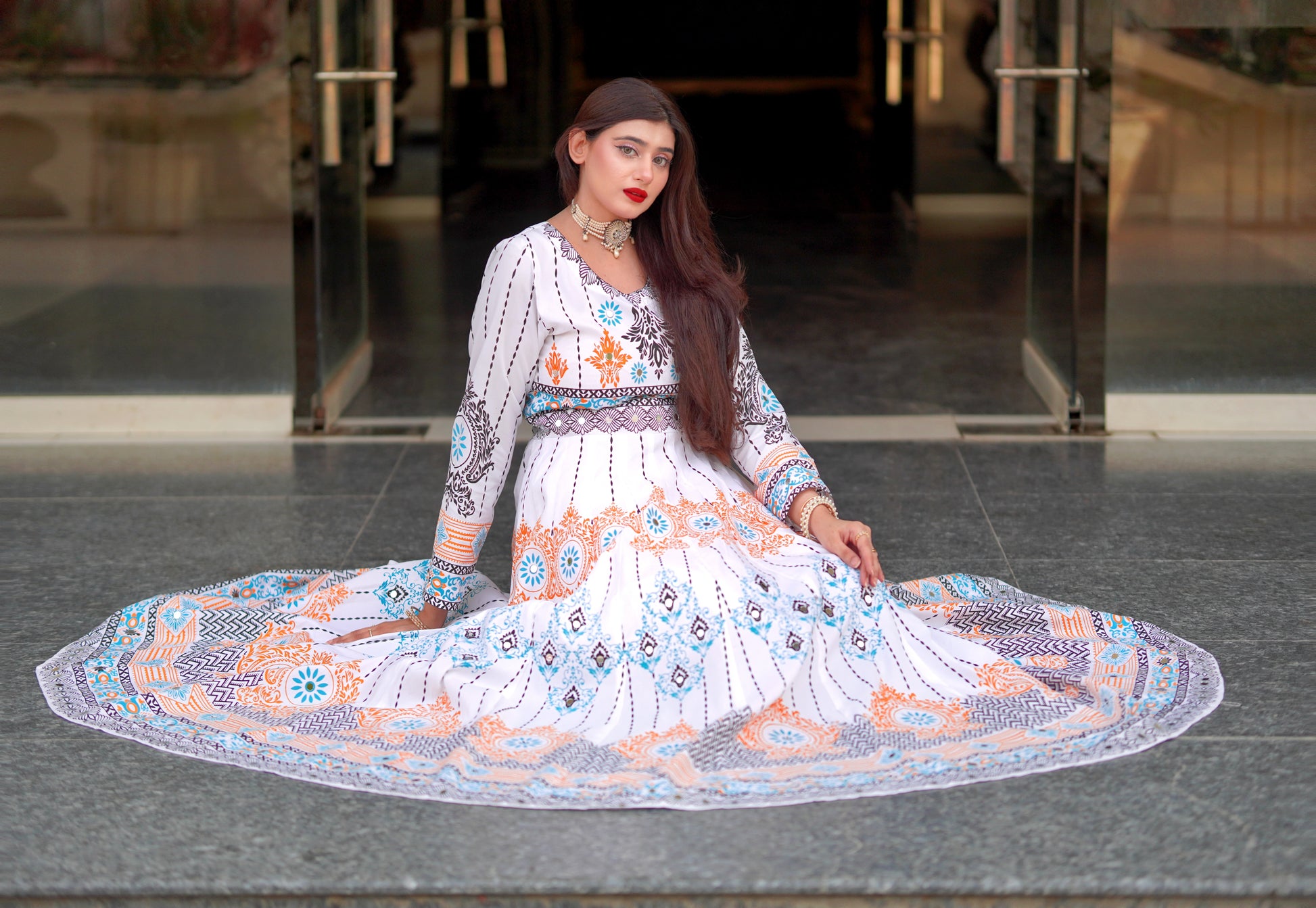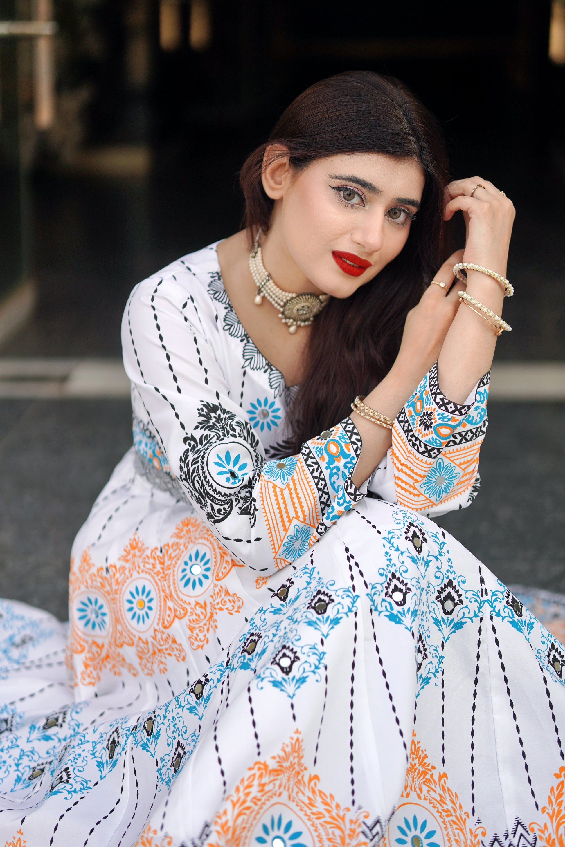 ITS 2PC MAXI WITH CAPRI, ON WHOLE MAXI THERE IS SCREEN PRINT WITH MIRROR WORK INCLUDES ON IT.....FABRIC IS AVAILABLE FOR BOTH SEASONS WINTER AND SUMMER....