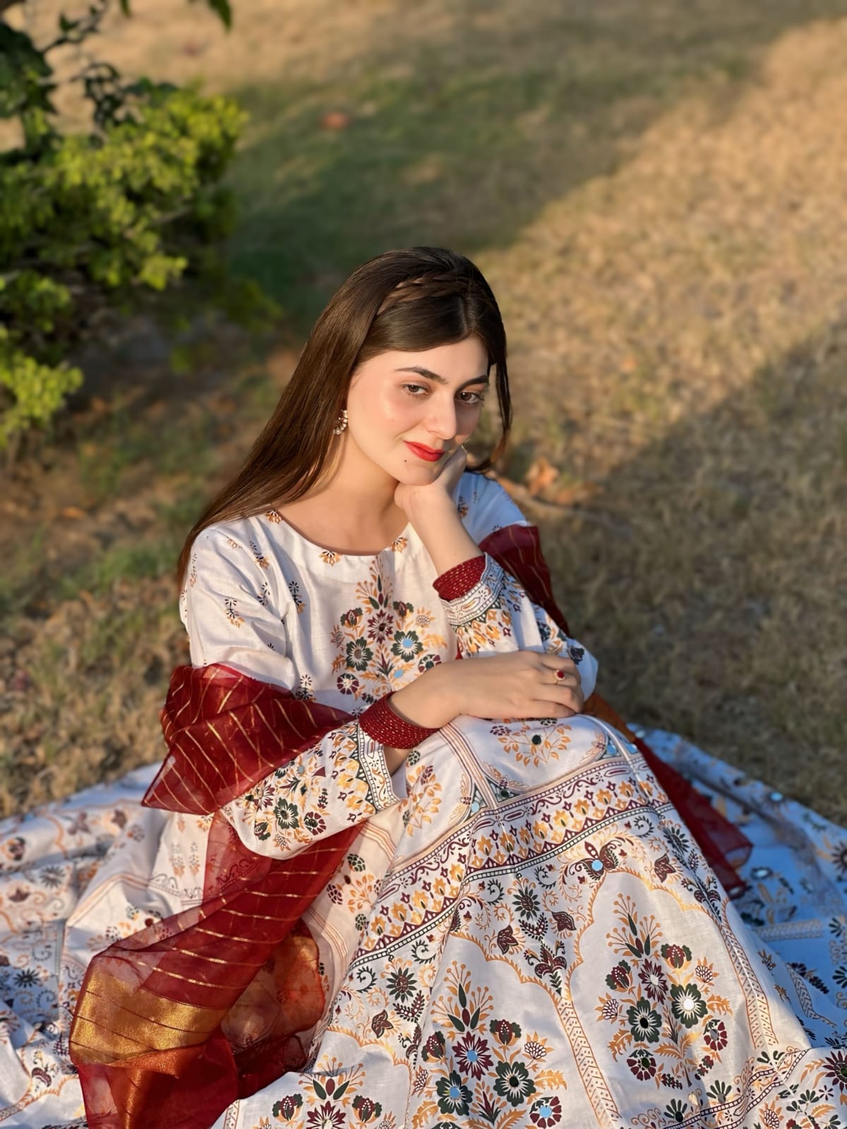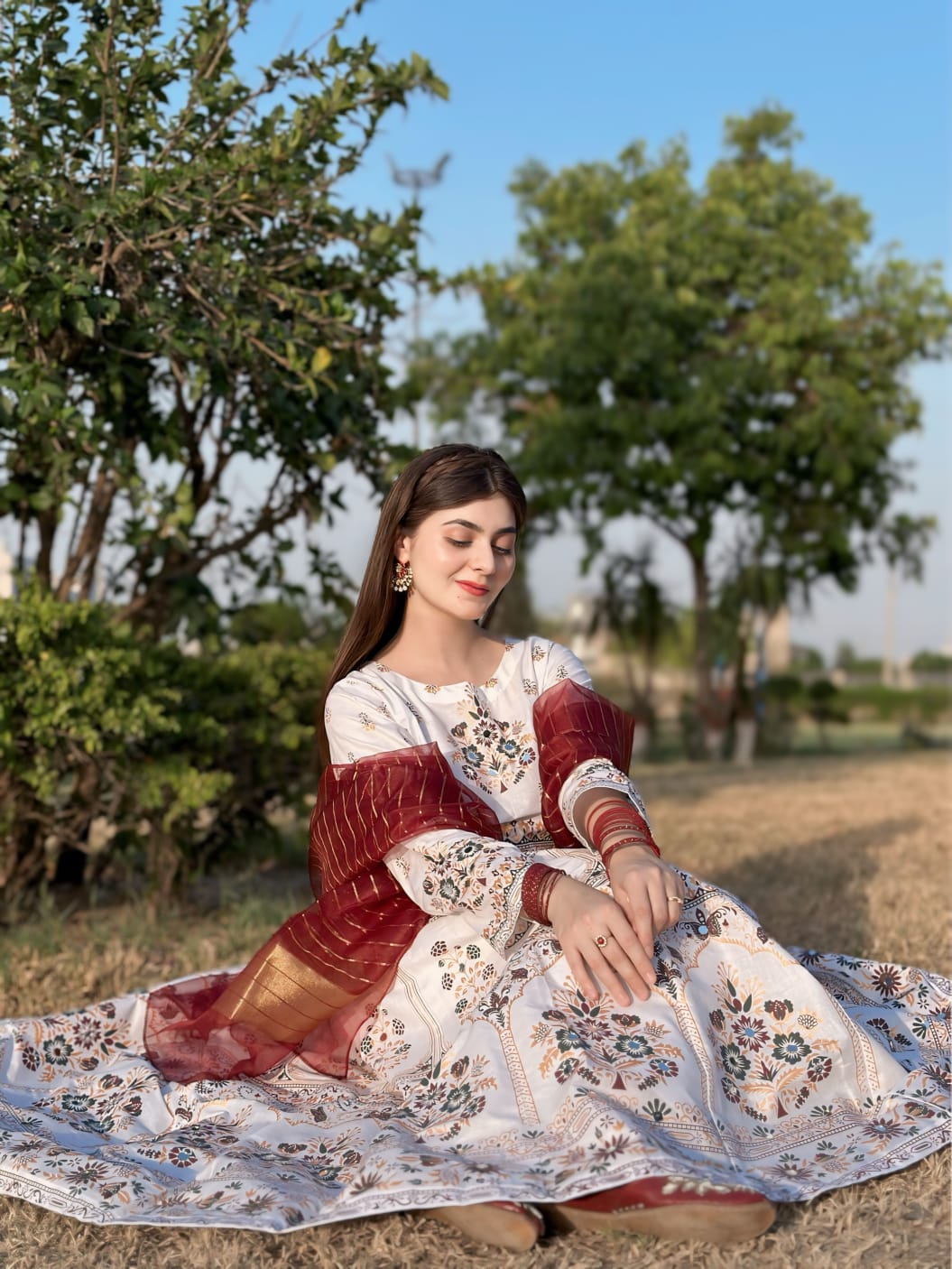 On whole maxi there is screen print with combination of green and maroon colour also including mirror work on it.